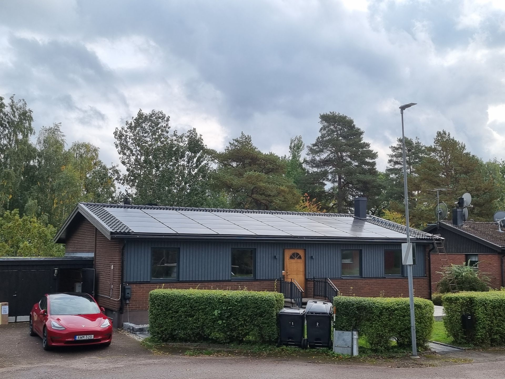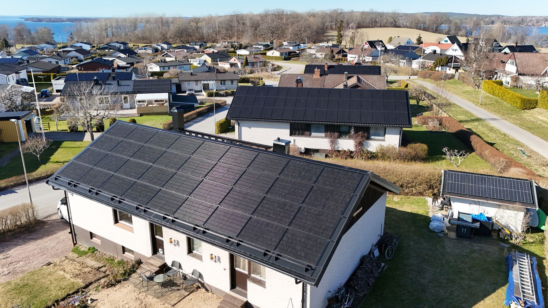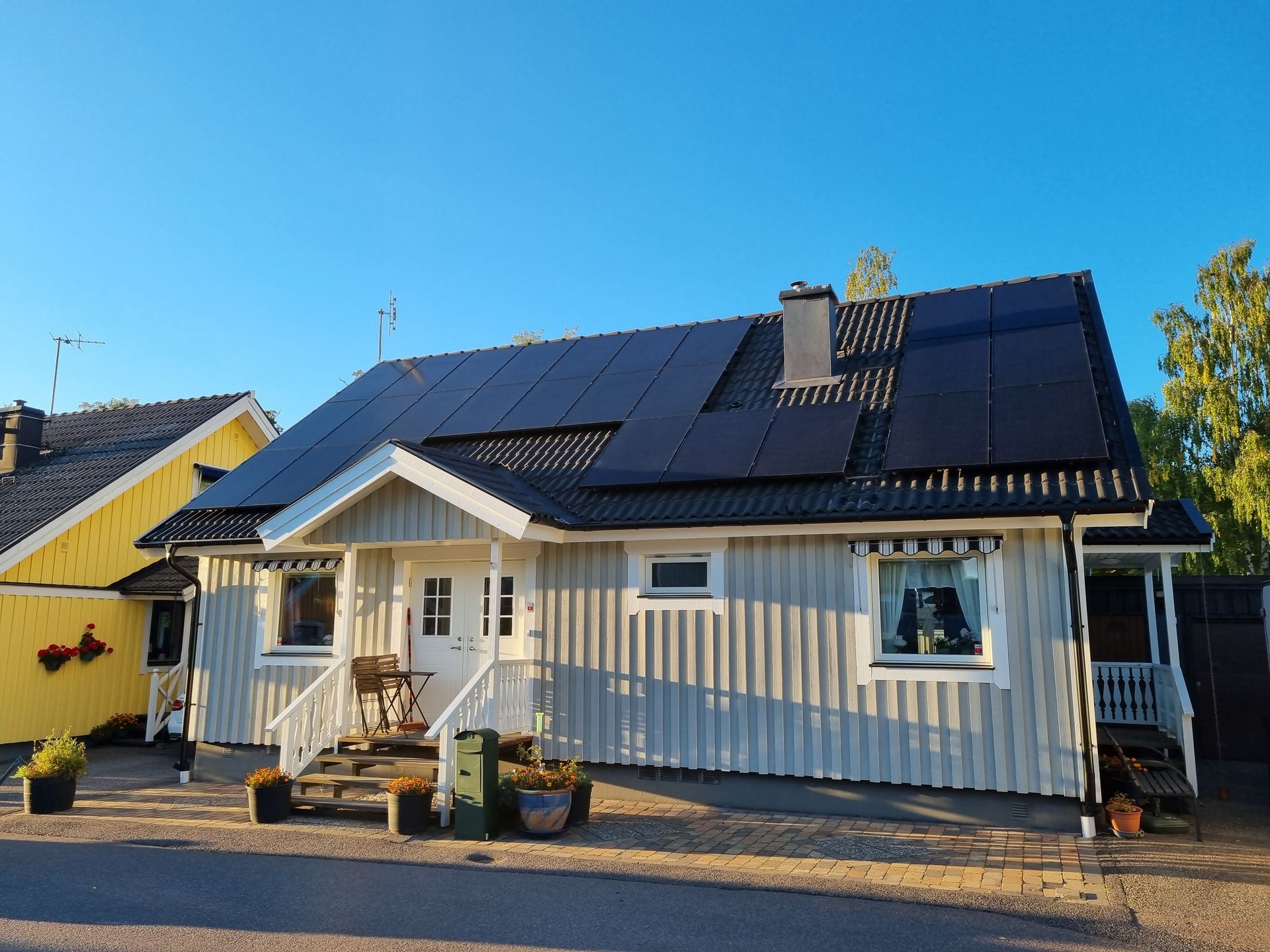 Svarta solpaneler på villtak