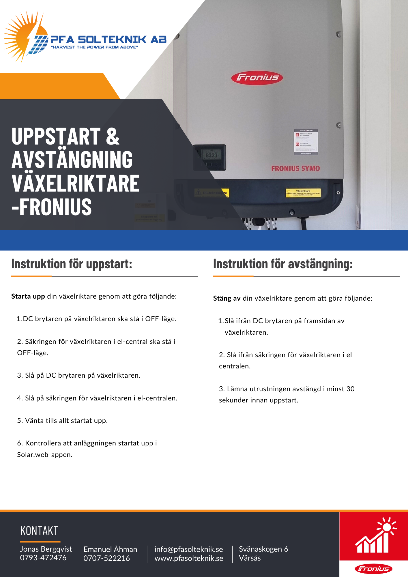 Har du problem med din solcellsanläggning, växelriktare, batteri eller annan installation vi gjort? Fyll i formuläret så kontaktar vi dig så snart som möjligt.